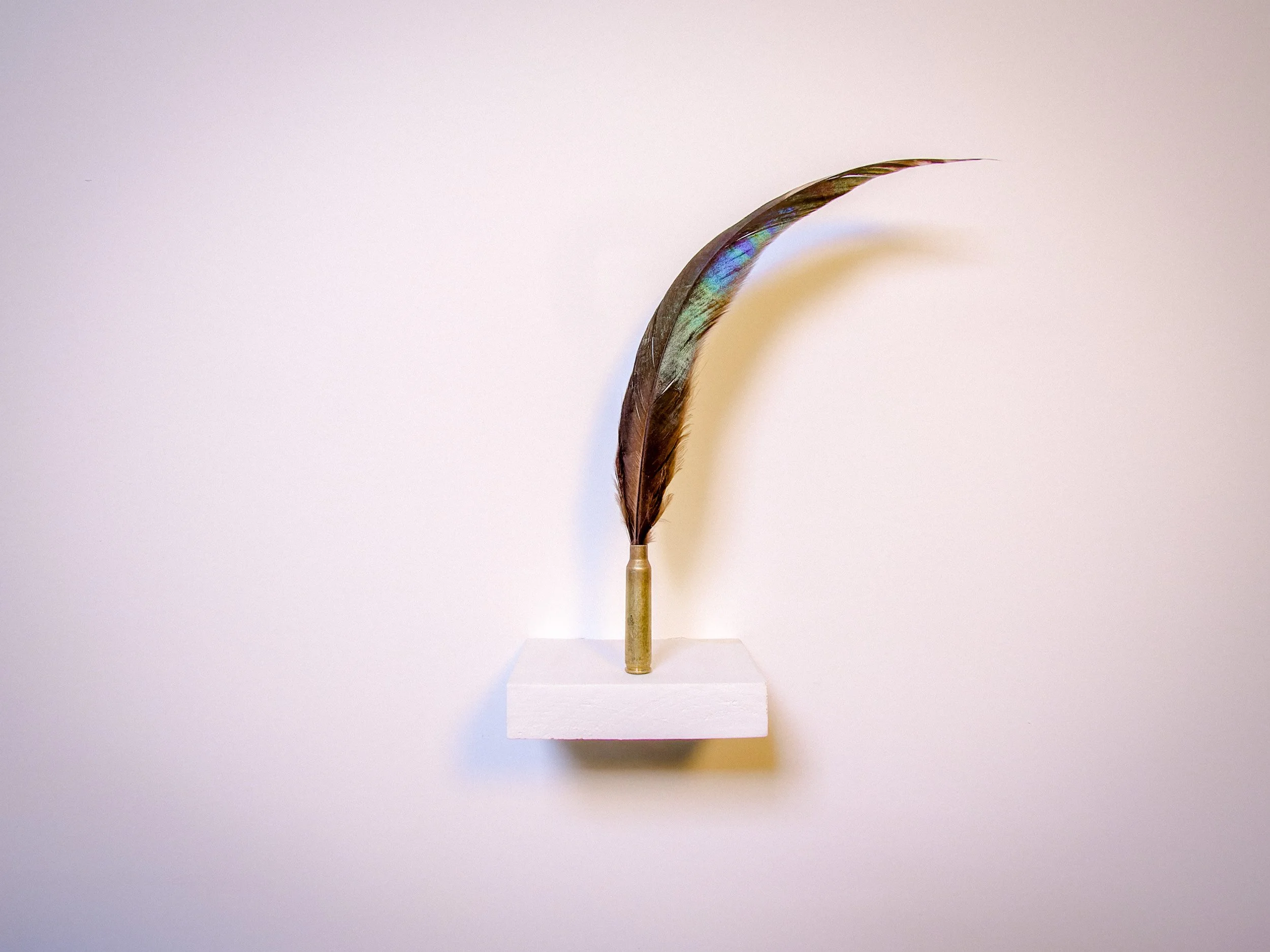 Rooster feather, 5.56mm NATO bullet casing